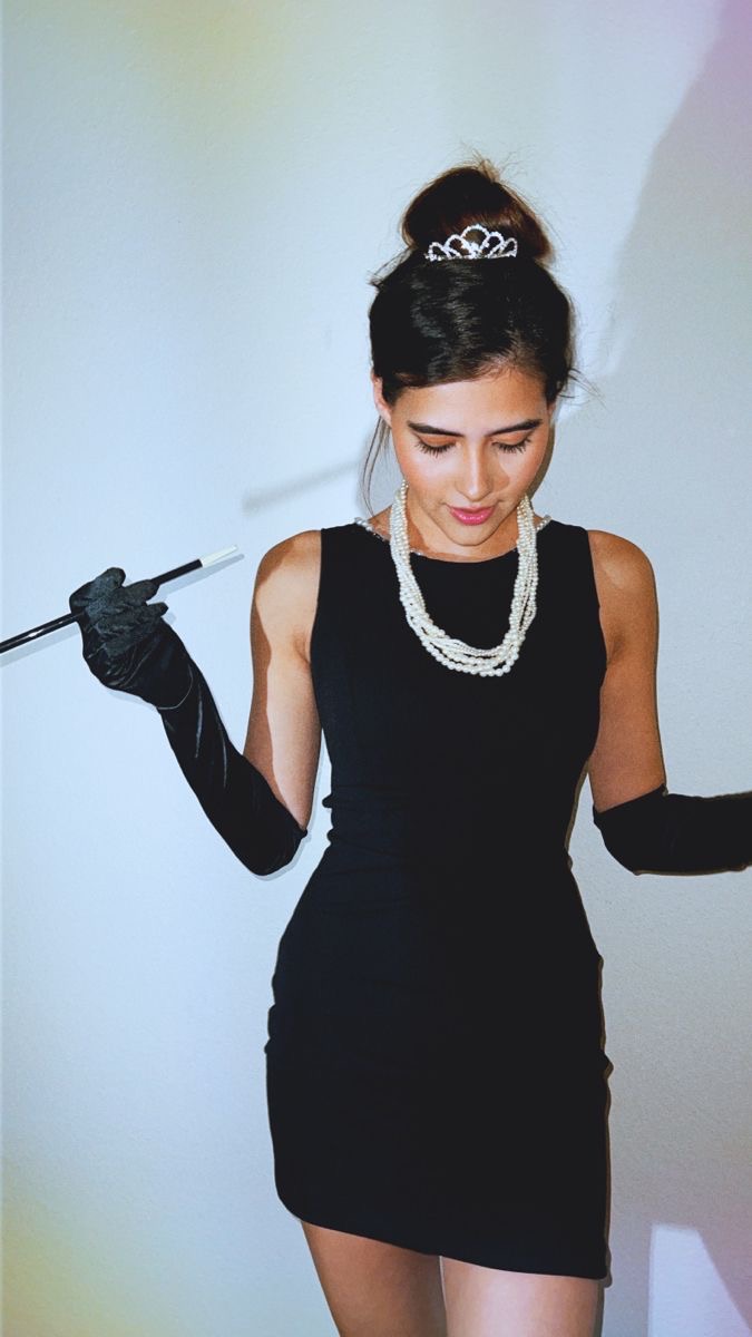 Qué necesitas: Un vestido negro, un collar de perlas (o cualquier collar llamativo), gafas de sol grandes y un clean look. Tip extra: Si tienes unos guantes largos, agrégalos para más elegancia.