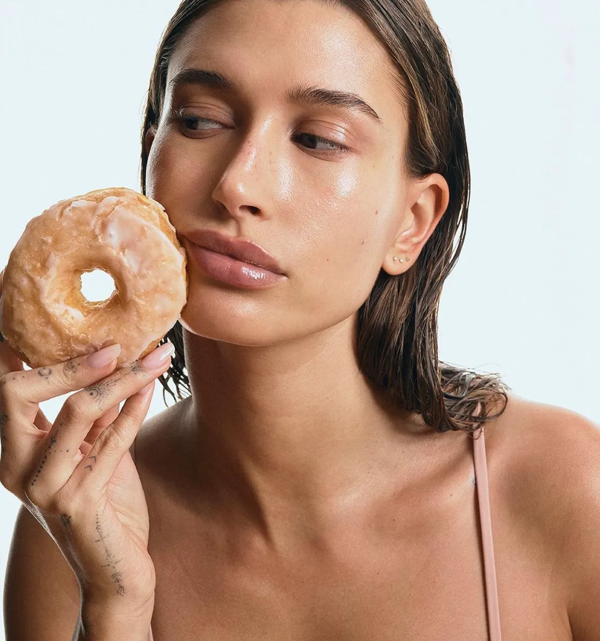 El glazed donut look —esa piel radiante, jugosa y perfecta como un glaseado de donut— fue popularizado por Hailey Bieber a través de su marca Rhode. En cuestión de semanas, la tendencia no solo conquistó a sus seguidores, sino que se convirtió en sinónimo de lujo accesible y deseable. La marca encontró una fórmula que funcionaba y amplió el concepto con propuestas como el latte makeup, inspirado en los tonos cálidos y terrosos de un café con leche, o el strawberry makeup, que evoca un rubor suave y natural como el de una frutilla. Incluso los productos han adoptado nombres que refuerzan esta conexión, como el ‘Glazing Milk’ o ‘Espresso Lip Tint’.